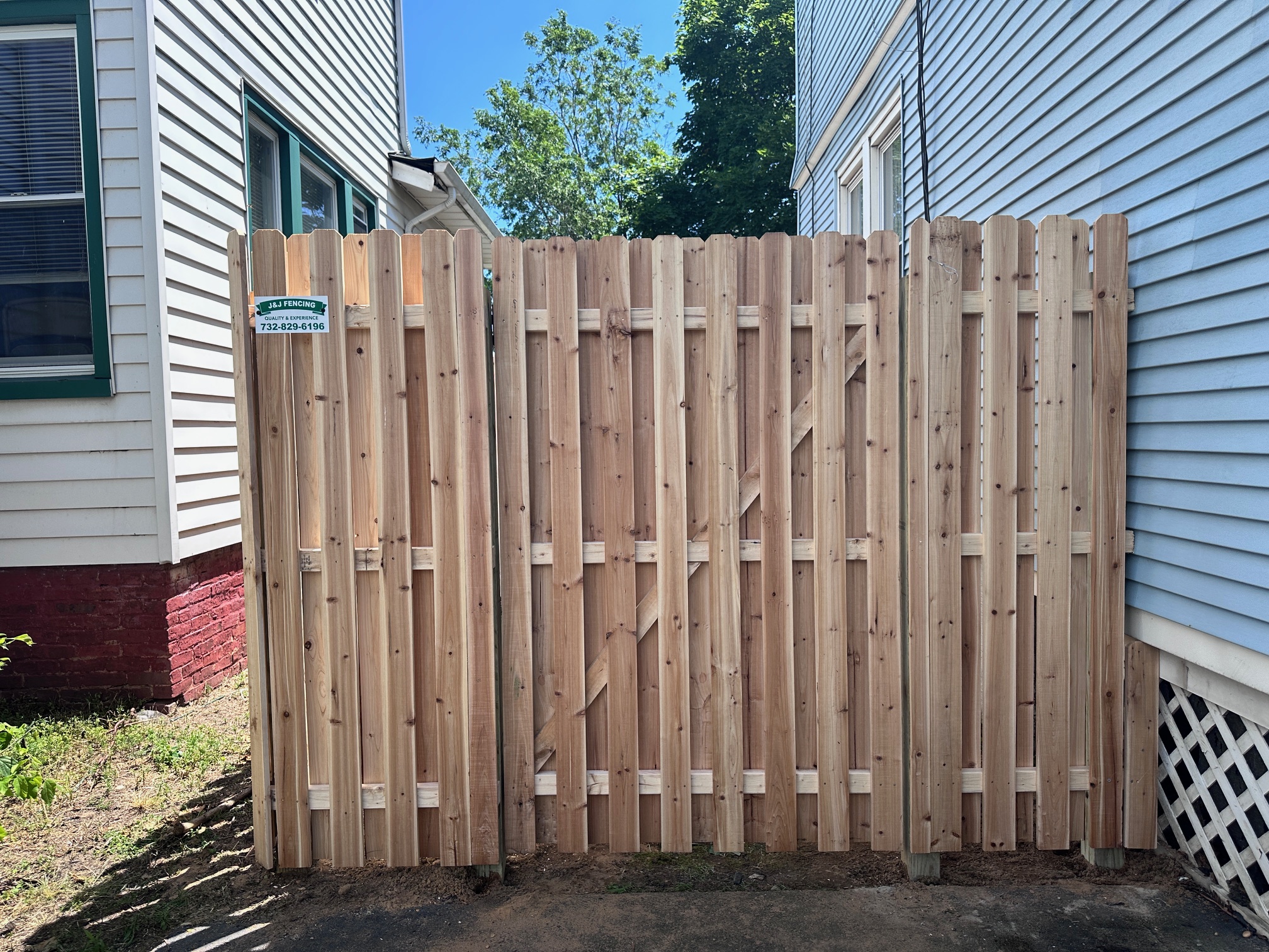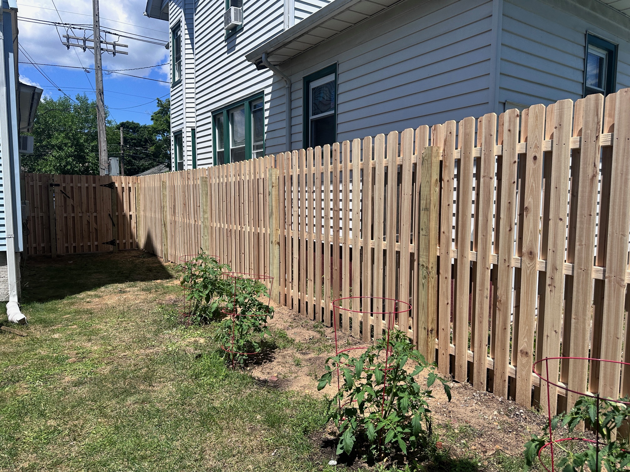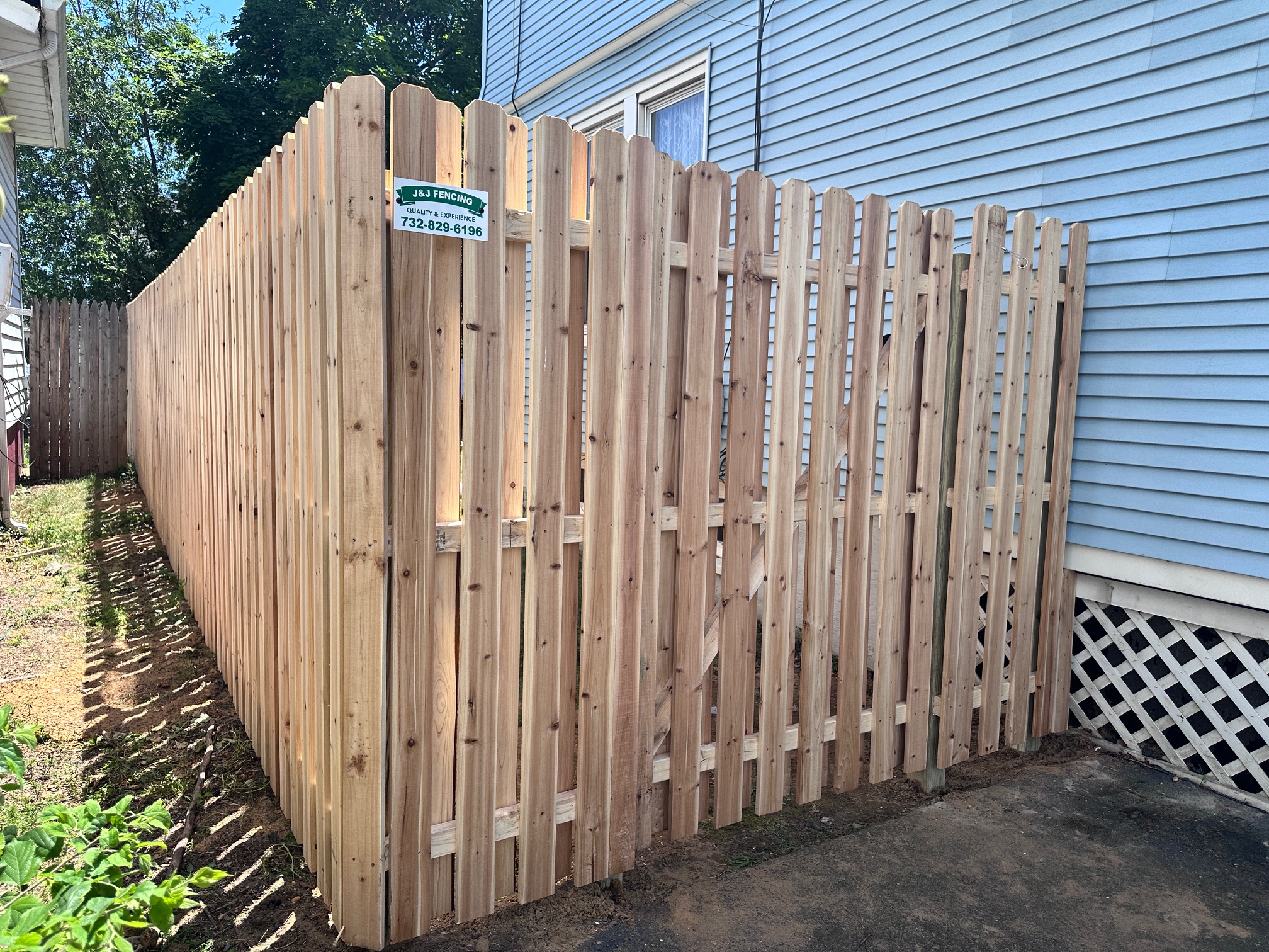 Recently completed a job in Keyport, New Jersey involving approximately 18 sections of board-on-board cedar wood fence. The customer was referred to me by his neighbor, for whom we had completed a similar job two years ago. The customer had initially hired someone else to install the fence, but they kept delaying the project. After waiting since March, he decided to contact me. I installed his fencing in less than two weeks.